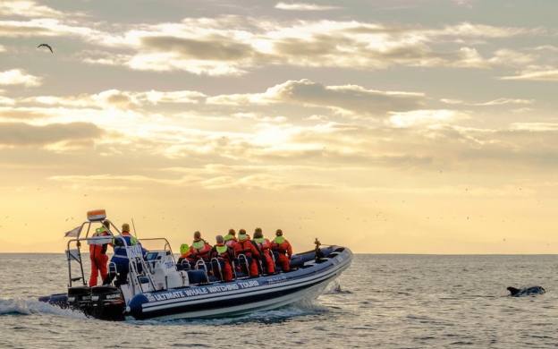 Get ready for a thrilling 2-hour speed boat whale watching tour from the floating pier in Akureyri, perfect for a late-night adventure. This unique experience offers a chance to see whales under the magical midnight sun. Specially designed RIB boats get you closer to the whales and wildlife than any other vessel. The fast, agile boats cover more area, increasing the chances of spotting whales, dolphins, and diverse birdlife without disturbing their natural habitat. As the whales never fully sleep, the sightings are as impressive as during the day tours. Ideal for nature enthusiasts, adventure seekers, or those looking for a romantic and exciting night out, this tour combines the beauty of Eyjafjörður with the excitement of close wildlife encounters.