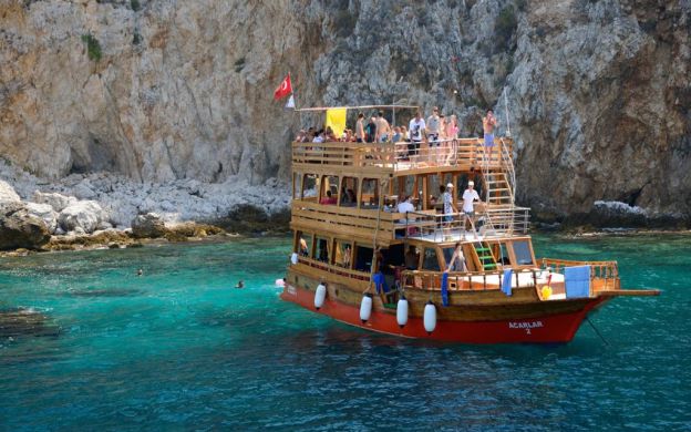 After you can relax as the tour takes a one-hour boat trip departing from Alanya harbour and going around the peninsula. You will see the Red Tower, the ruins of the Seljuk Castle built in the 13th century and numerous caves at the base of the peninsula.