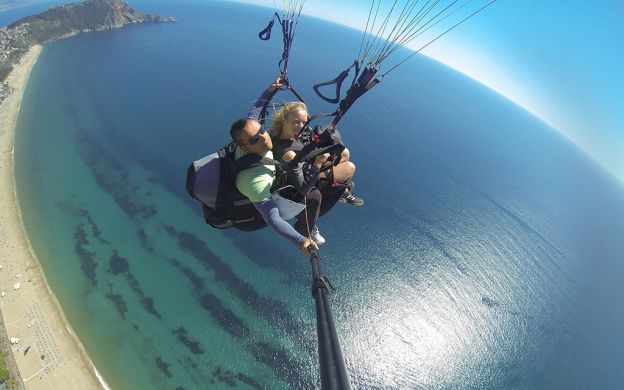 Paragliding experience is available every day, in the morning or afternoon. The driver will come to pick you up at the hotel and you will drive to Cleopatra’s beach in Alanya. It will take just 20 minutes to get from there up the hill to the paragliding start point - 800m above sea level. On arrival you will have a short briefing and then be ready to have an unforgettable paragliding experience. A professional tandem pilot will control the speed of the flight and you can enjoy the stunning views over Alanya, the turquoise sea and beautiful mountains.