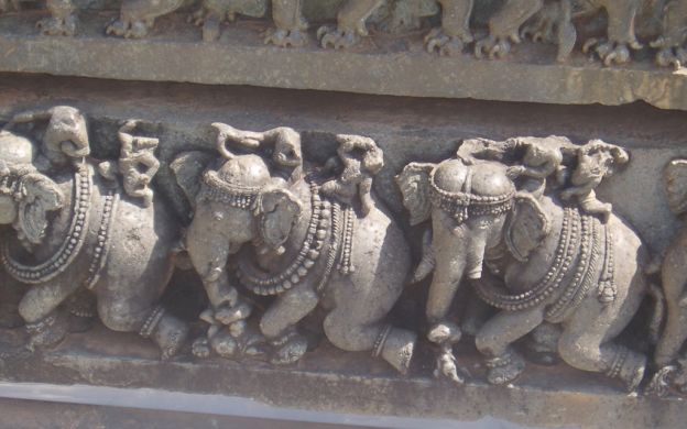 Construction of the Hoysaleswara Temple, Halebid’s claim to fame, began around 1121 and went on for more than 80 years. It was never completed but nonetheless stands today as a masterpiece of Hoysala architecture. The interior of its inner sanctum, chiselled out of black stone, is marvellous. On the outside, the temple’s richly sculpted walls are covered with a flurry of Hindu deities, sages, stylised animals, and friezes depicting the life of the Hoysala rulers.