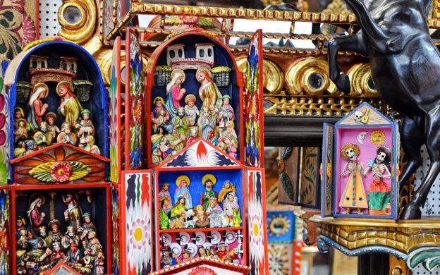 A stroll through the market is a feast of colours with seemingly every shade known to mankind represented in the astonishing array of clothing made from alpaca wool. The alpaca is a species related to camels, which produces some of the world’s finest fibres. The baby alpaca variant is made from the even finer wool of young alpacas while vicuña wool is considered the finest of all. Choose from beautiful displays of ponchos, shawls, jumpers, scarves and the ubiquitous chullo, the woolly hats with ear flaps that are the trademark symbol of the Andes. You will also find traditional handmade wooden sculptures and colourful painted goods. Prices tend to be standardised but it pays to haggle a bit and do some bargaining.