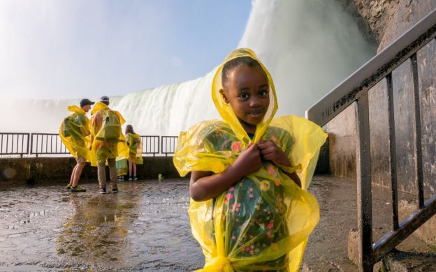 Ponchos are provided, but waterproof shoes and pouches for electronics are recommended due to heavy mist near Horseshoe Falls.