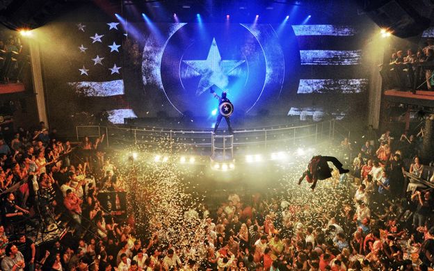 Think Dance, Trance, Hip-Hop, and Rave. Get ready for flying acrobats, bar top conga lines, movie clips projected on to high tech video screens, live bands, DJ's, lights, special effects, balloons, soap bubbles, confetti streamers and much more. You're guaranteed a night out to remember at either of Cocobongo's two locations at Cancun and Playa del Carmen.